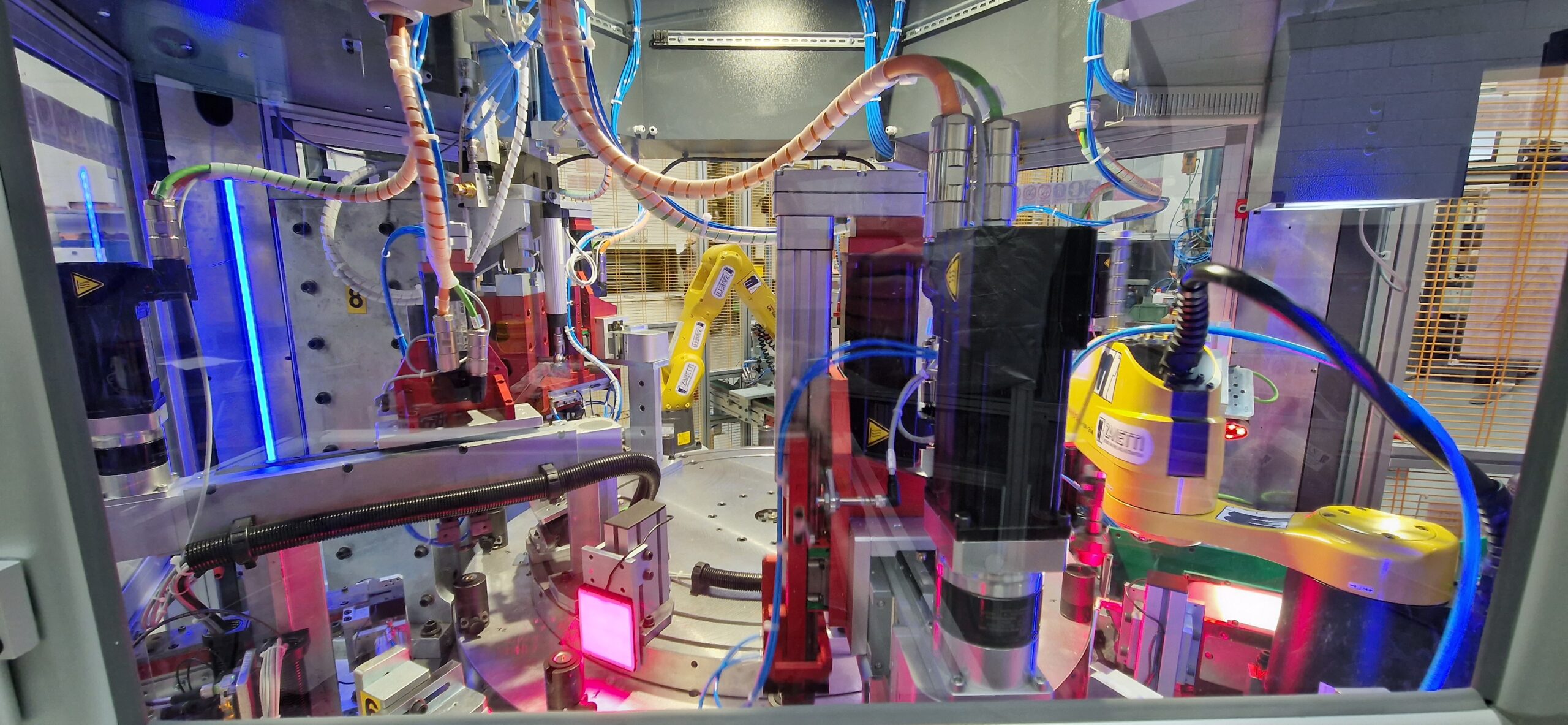 Tutte le fasi di carico/scarico e assemblaggio dispongono di sistemi di visione tramite telecamera per il controllo del corretto montaggio. E’ inoltre presente un controllo della forza e dell’altezza del sistema di pressatura tramite cella di carico