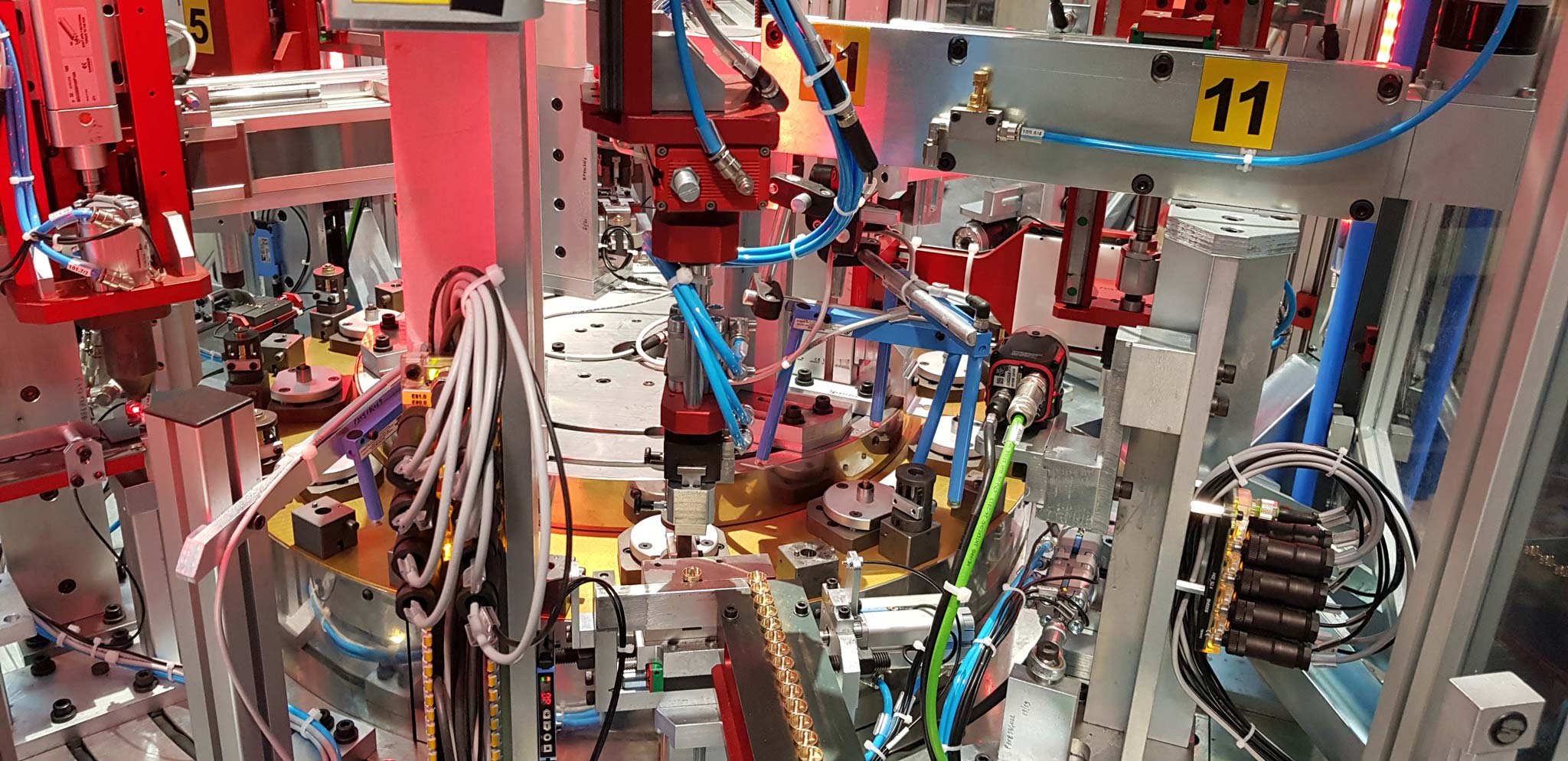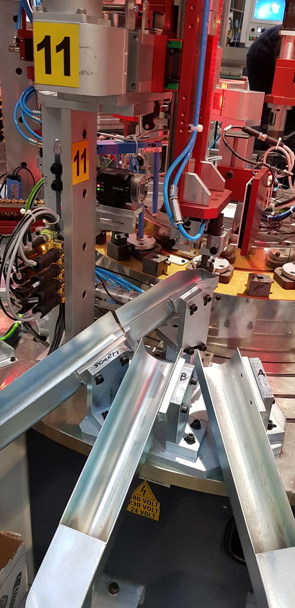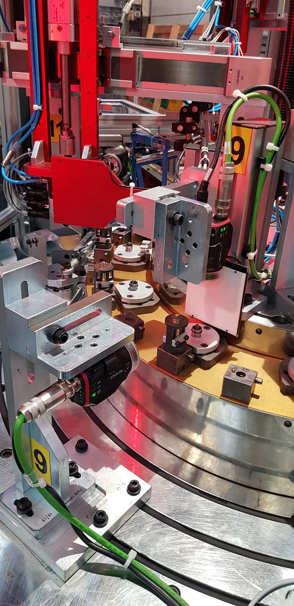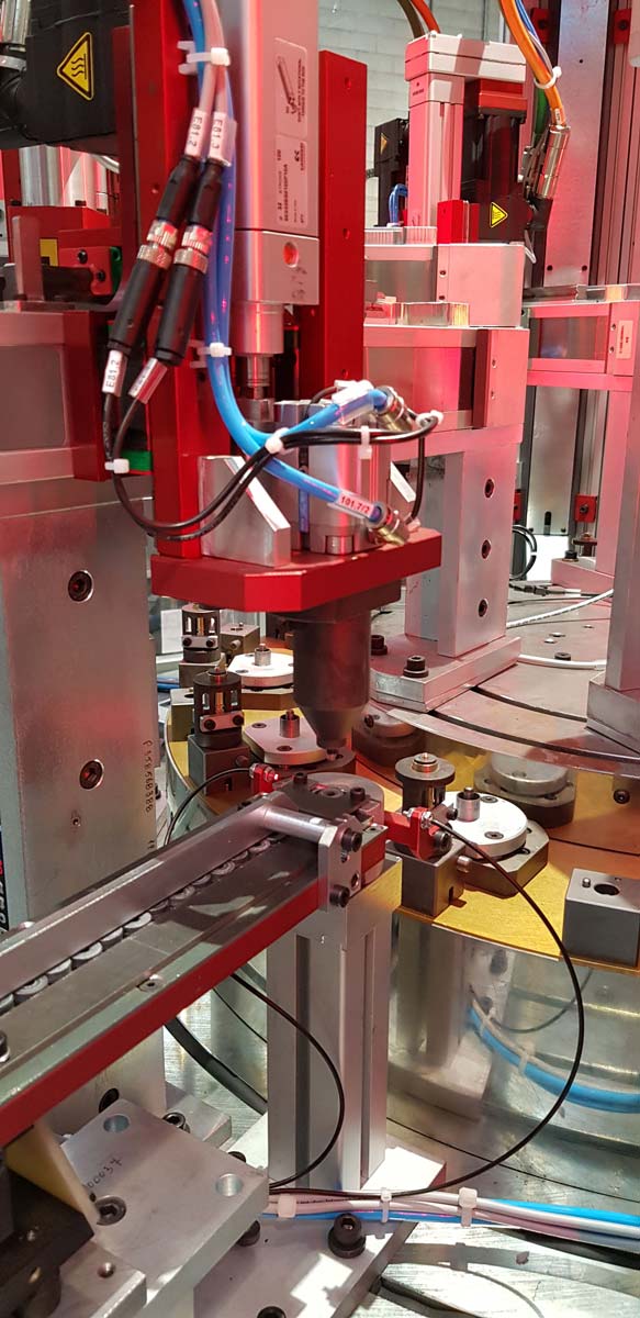 Tutte le fasi di assemblaggio dispongono di sistemi di visione tramite telecamera per il controllo di corretto montaggio. Lo scarico è automatico con selezione buoni e discriminazione tipologia di scarti.