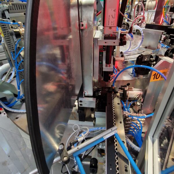 Tutte le fasi di assemblaggio dispongono di sistemi di visione tramite telecamera per il controllo di corretto montaggio. Lo scarico è automatico con selezione buoni e discriminazione tipologia di scarti.