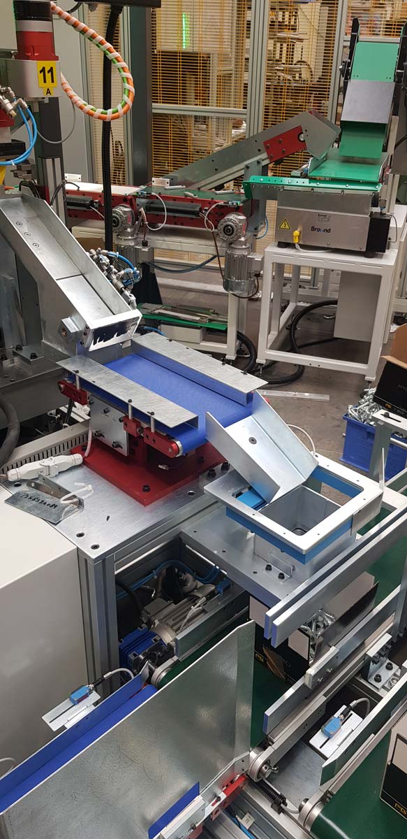 Tutti i componenti sono alimentati automaticamente tramite vibratori circolari e rettilinei, i quali possono essere integrati con tramogge di nostra produzione.